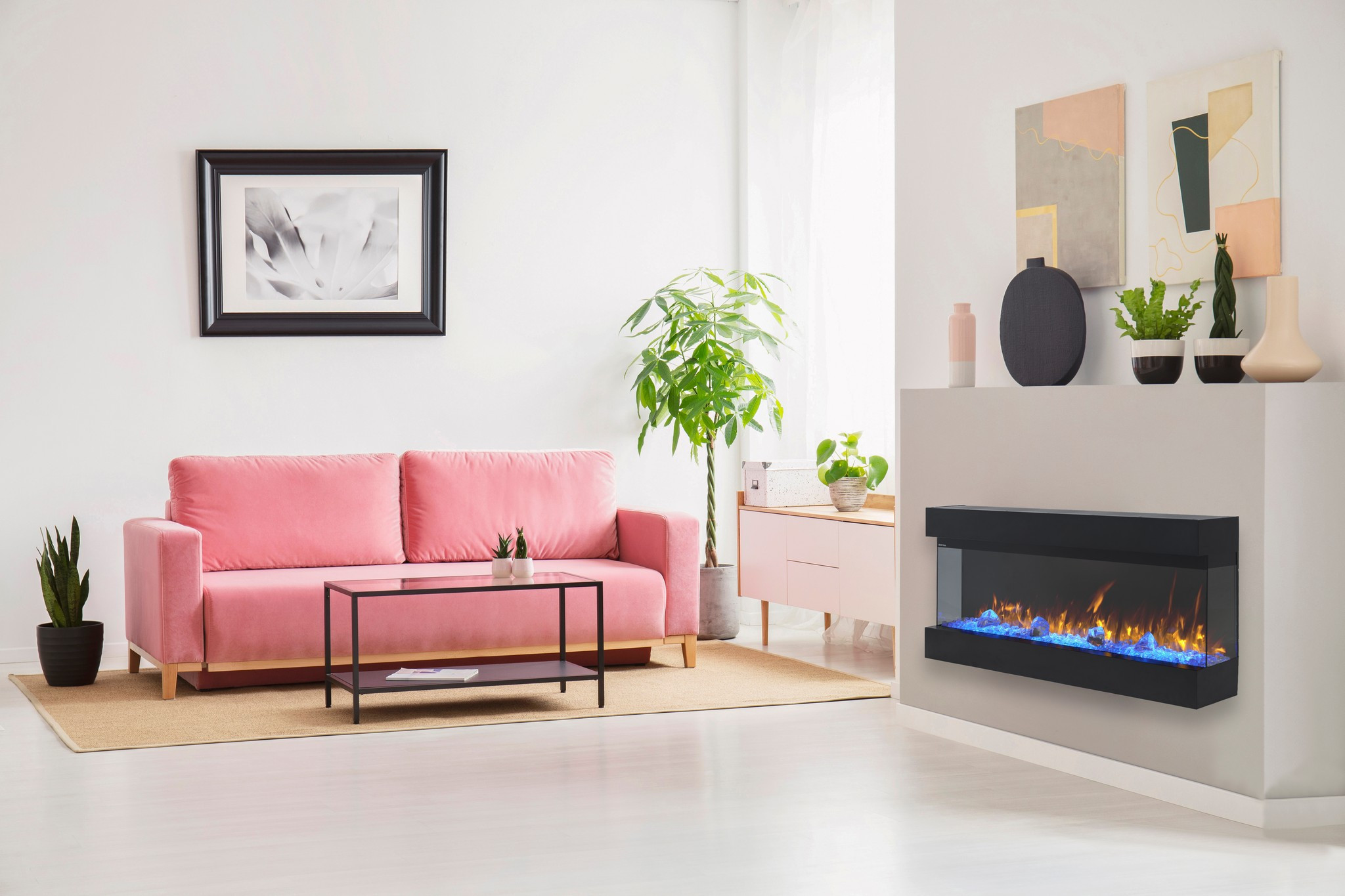 #3Install the fireplace on a wall