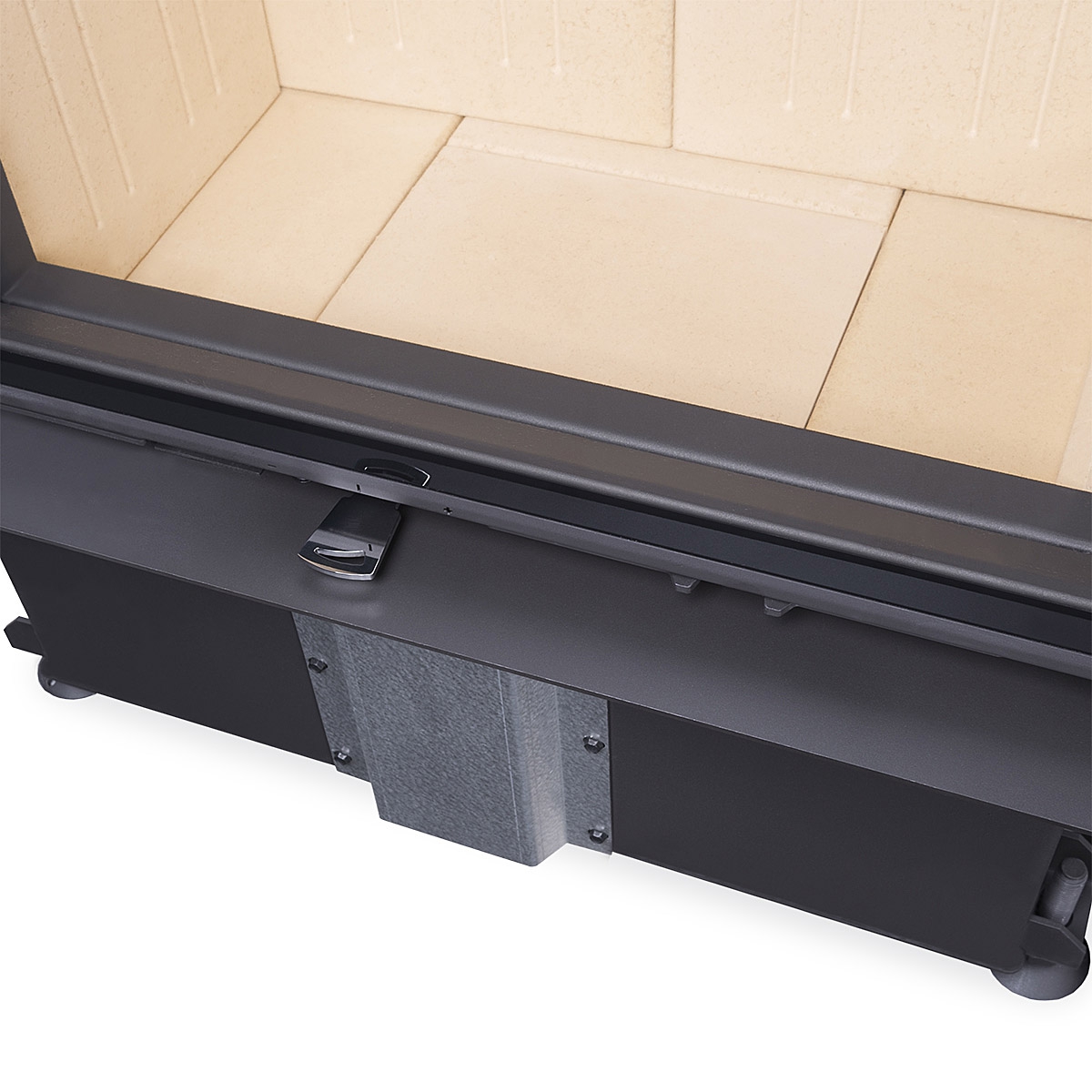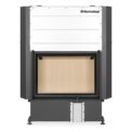 IMPRESSION fireplace inserts have unusually high glass windows, offering a luxurious view of the fire. Double glazing in the specially rigid profile of the door frame allows these fireplace inserts to be used for accumulation and convection operation. The easy, silent and precise operation of the lifting door is guaranteed by the state-of-the-art SILENT LIFT system. The lifting door is operated using a removable handle, which can optionally be replaced by a fixed handle. The combustion chamber is available in black or cream colour with an optional change for the furnace grate. The innovative DOUBLE SPIN flue gas system increases efficiency and reduces the environmental impact of the fireplace insert. Secondary air intake washes over the glass in the door to prevent the cumulation of deposits. Primary and secondary air intake is regulated by a single control element. Fireplace inserts are equipped with a EAI (external air intake), which can be easily connected using the AIRBOX rotating elbow. The flue gas exhaust can be connected from the side or the top. Side and top MAMMOTH accumulation sets can be purchased separately for fireplace inserts, which can extend the period of heat radiation by more than 12 hours.