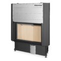 IMPRESSION fireplace inserts have unusually high glass windows, offering a luxurious view of the fire. Double glazing in the specially rigid profile of the door frame allows these fireplace inserts to be used for accumulation and convection operation. The easy, silent and precise operation of the lifting door is guaranteed by the state-of-the-art SILENT LIFT system. The lifting door is operated using a removable handle, which can optionally be replaced by a fixed handle. The combustion chamber is available in black or cream colour with an optional change for the furnace grate. The innovative DOUBLE SPIN flue gas system increases efficiency and reduces the environmental impact of the fireplace insert. Secondary air intake washes over the glass in the door to prevent the cumulation of deposits. Primary and secondary air intake is regulated by a single control element. Fireplace inserts are equipped with a EAI (external air intake), which can be easily connected using the AIRBOX rotating elbow. The flue gas exhaust can be connected from the side or the top. Side and top MAMMOTH accumulation sets can be purchased separately for fireplace inserts, which can extend the period of heat radiation by more than 12 hours.