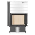 IMPRESSION fireplace inserts have unusually high glass windows, offering a luxurious view of the fire. Corner glazing (left, right) consists of two parts. The easy, silent and precise operation of the lifting door is guaranteed by the state-of-the-art SILENT LIFT system. The lifting door is operated using a removable handle, which can optionally be replaced by a fixed handle. The combustion chamber is available in black or cream colour with an optional change for the furnace grate. Inserts are designed for both accumulation and convection operation. The innovative DOUBLE SPIN flue gas system increases efficiency and reduces the environmental impact of the fireplace insert. Secondary air intake washes over the glass in the door to prevent the cumulation of deposits. Primary and secondary air intake is regulated by a single control element. Fireplace inserts are equipped with an EAI (external air intake) system, which can be easily connected using the AIRBOX rotating elbow. The flue gas exhaust can be connected from the side or the top. Side and top MAMMOTH accumulation sets can be purchased separately for fireplace inserts, which can extend the period of heat radiation by more than 12 hours.