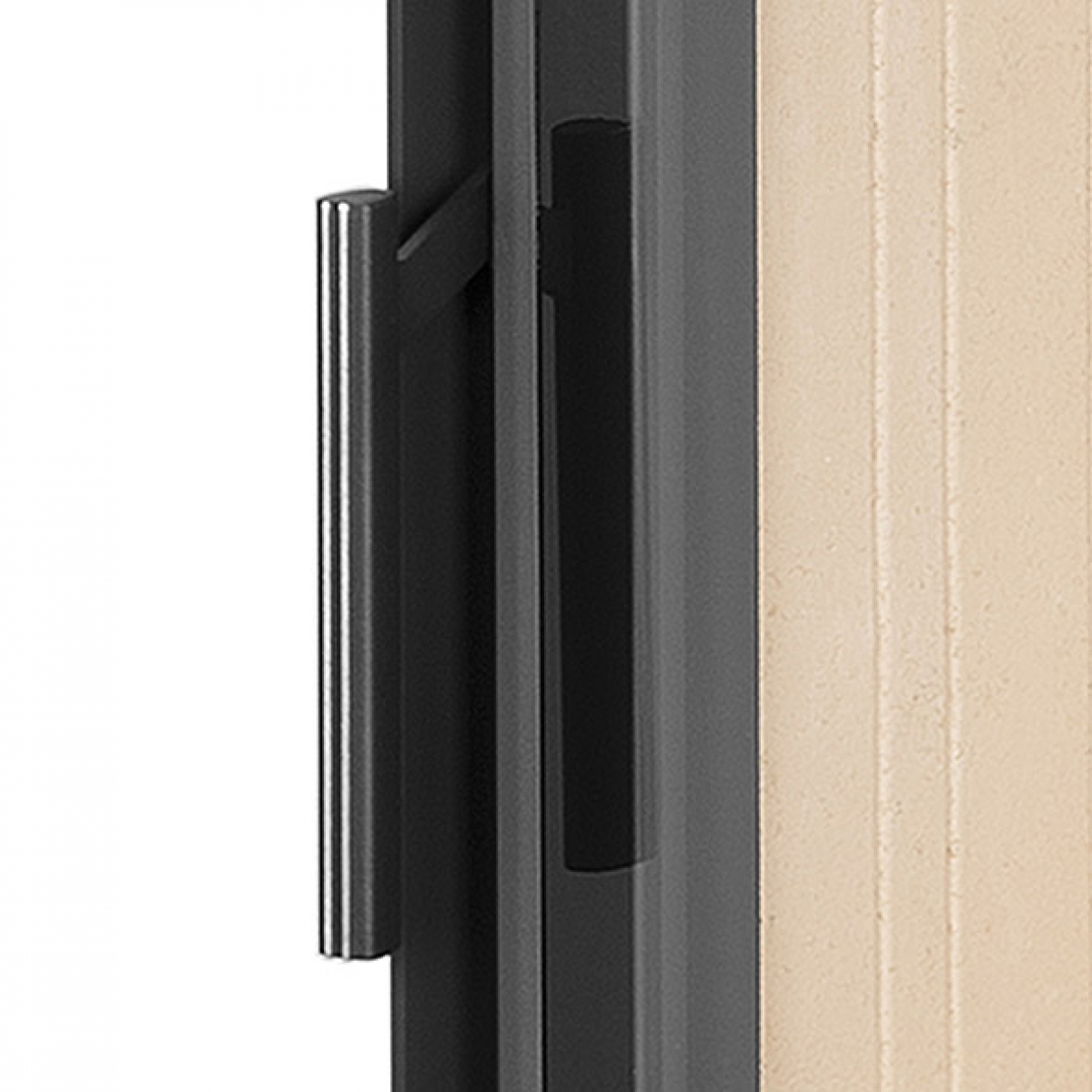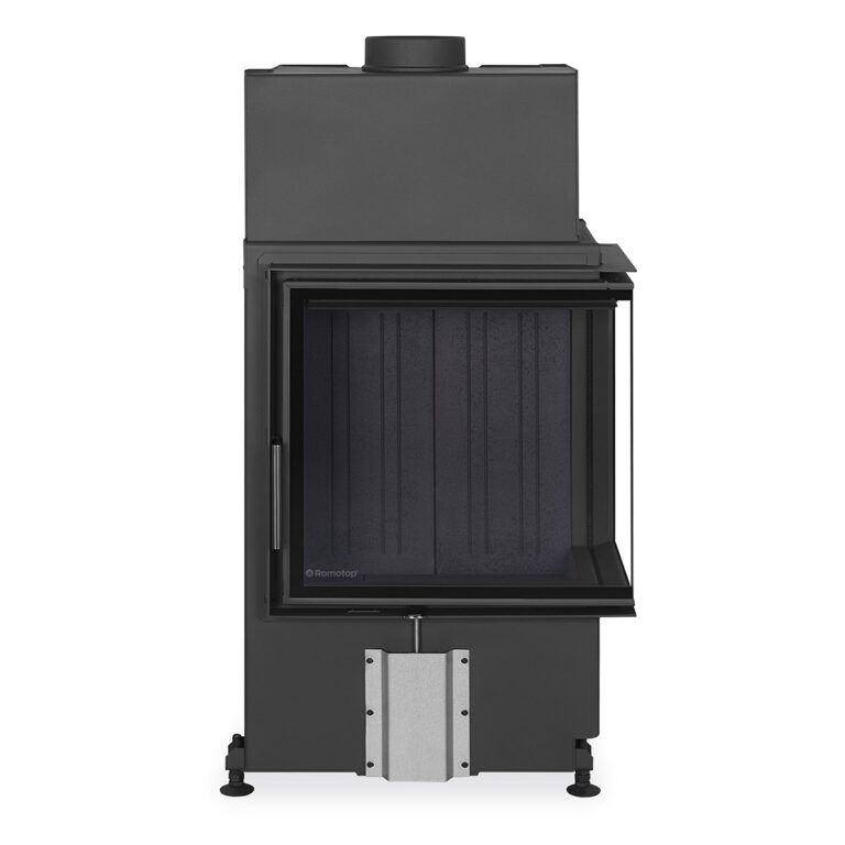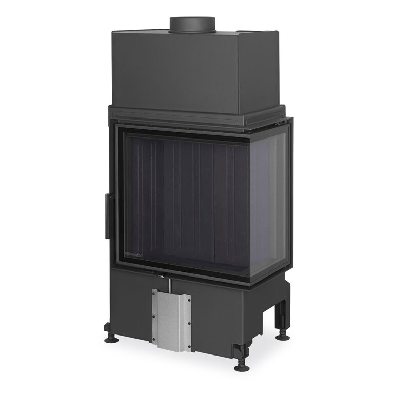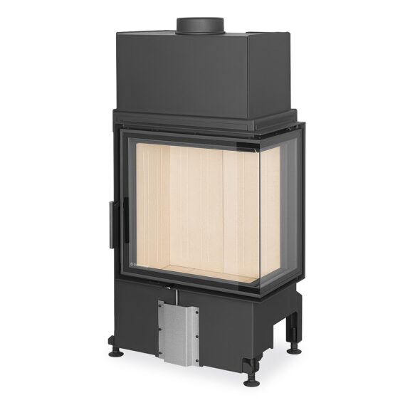 IMPRESSION fireplace inserts with side opening and split corner glazing have unusually high glass windows, offering a luxurious view of the fire. Corner glazing (left, right) consists of two parts. The combustion chamber is available in black or cream colour with an optional change for the furnace grate. Inserts are designed for accumulation and convection operation. The innovative DOUBLE SPIN flue gas system increases efficiency and reduces the environmental impact of the fireplace insert. Secondary air intake washes over the glass in the door to prevent the cumulation of deposits. Primary and secondary air intake is regulated by a single control element. Fireplace inserts are equipped with an EAI (external air intake) system, which can be easily connected using the AIRBOX rotating elbow. The flue gas exhaust can be connected from the side or the top. Side and top MAMMOTH accumulation sets can be purchased separately for fireplace inserts, which can extend the period of heat radiation by more than 12 hours.