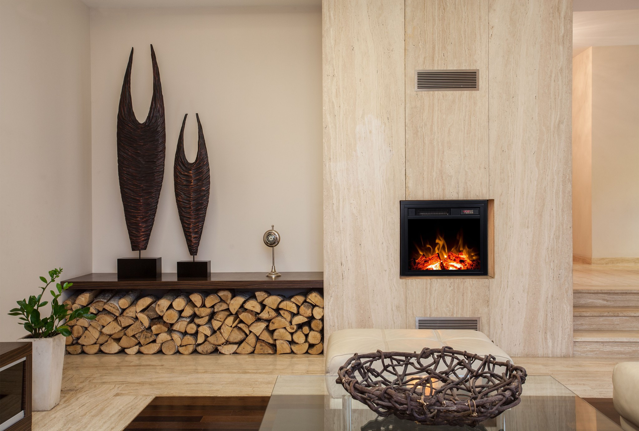 Sit down comfortably and turn the fireplace on.
