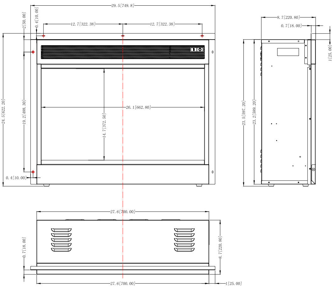 LED technology ensures low cost of the flame effect. It amounts to about 0.25 – 0.5 cent per hour, depending on particular fireplace.