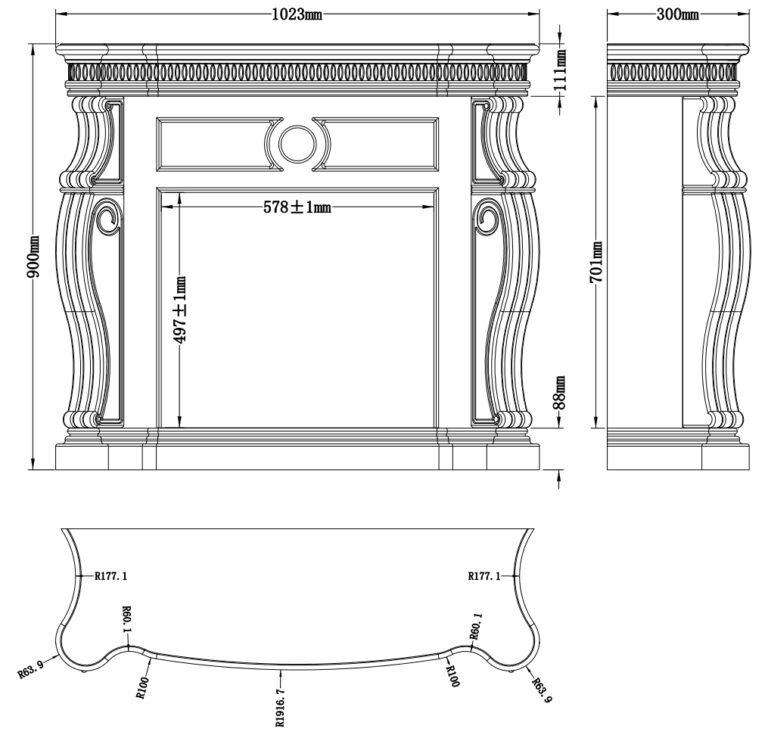 It features a medallion on the front panel of the fireplace, the corners of the fireplace are stylised with swan wings and the ends of the fireplace are decorated in the manner of acanthus leaves.