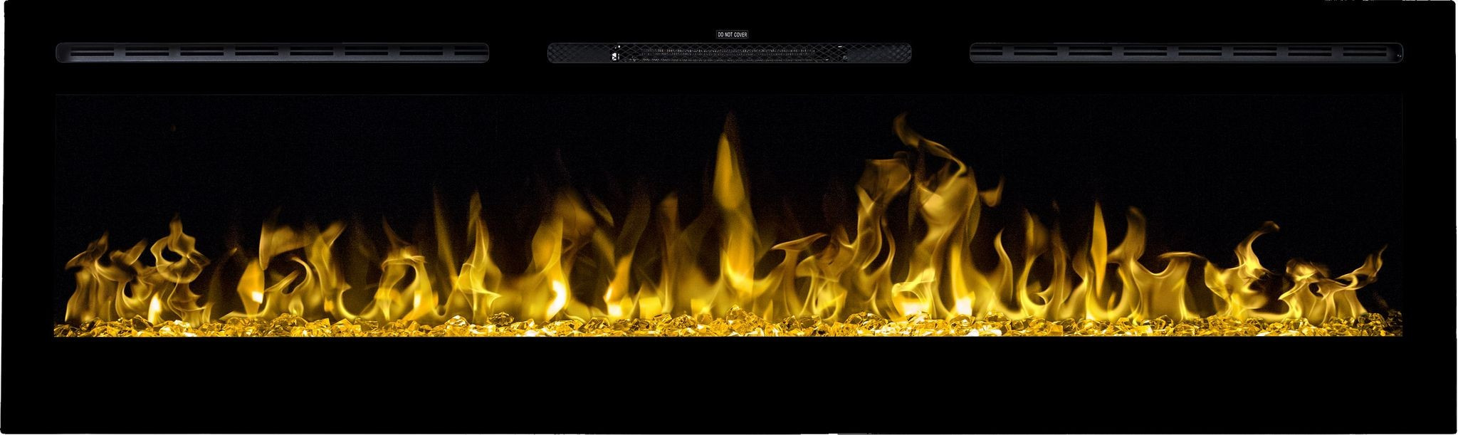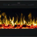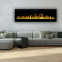 The front panel is made entirely of glass.The large black frame around the firebox highlights its exclusive character.