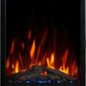 The Milos fireplace comes with translucent logs that give the impression of glowing wood.