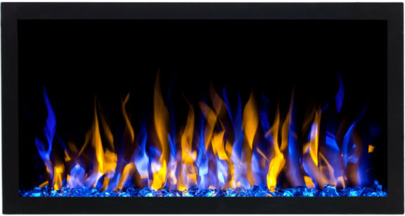 The fireplace has the narrowest front frame among all the fireplaces in our offer