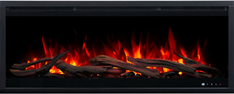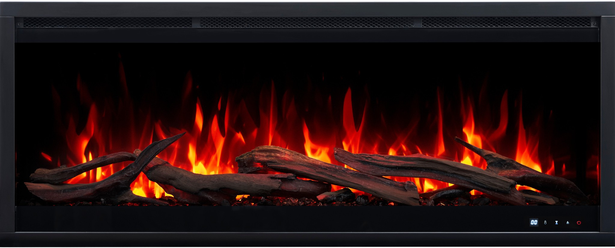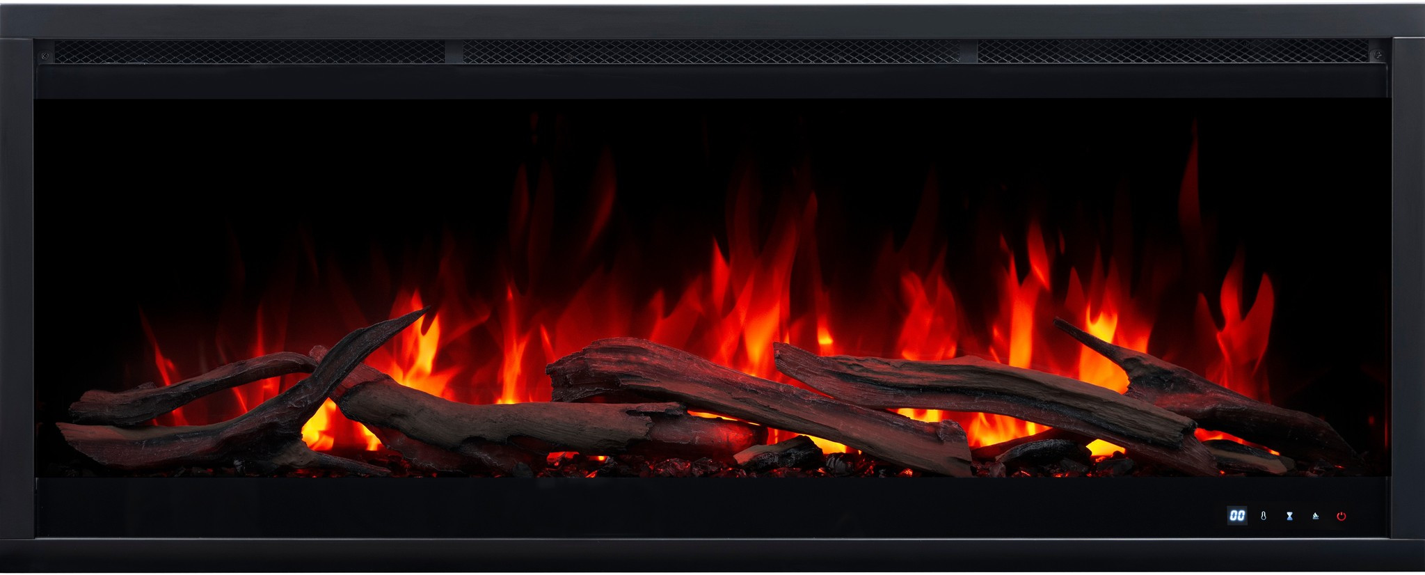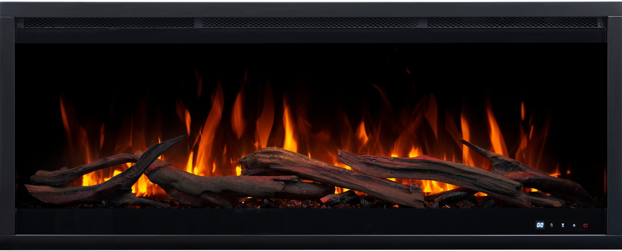 The Royal 3D fireplace comes with translucent logs that give the impression of glowing wood.