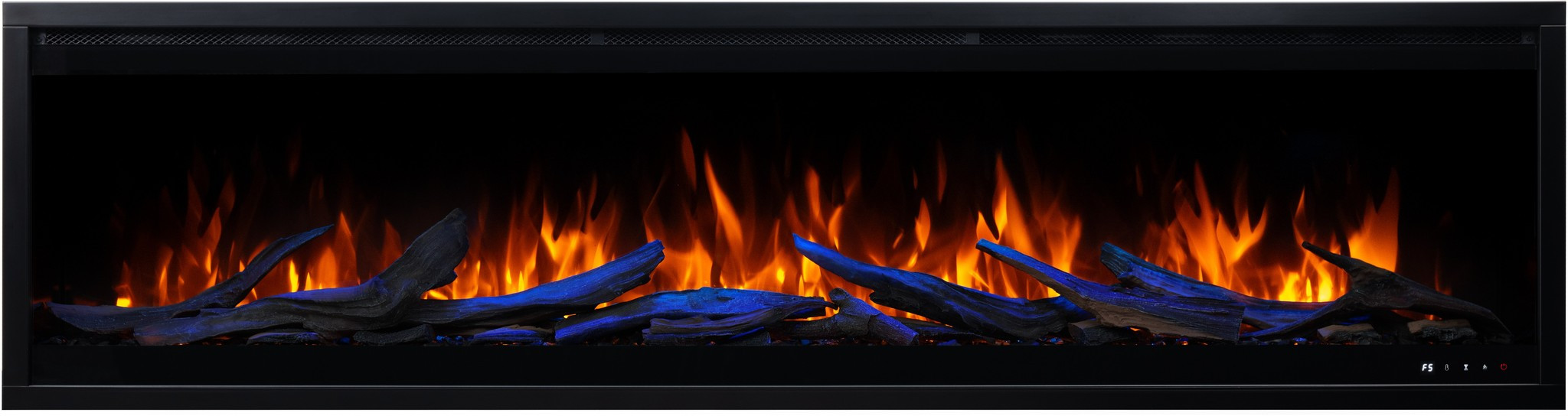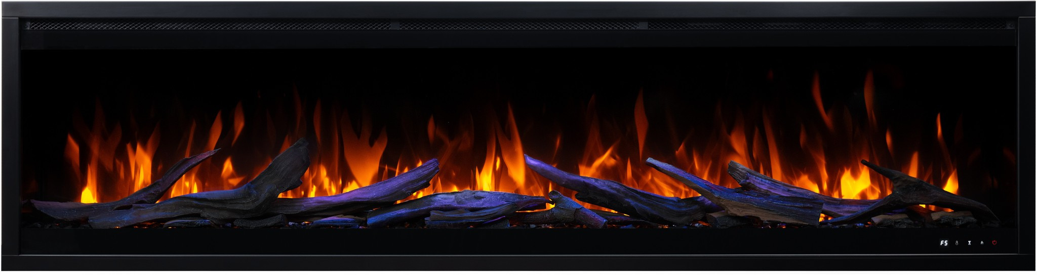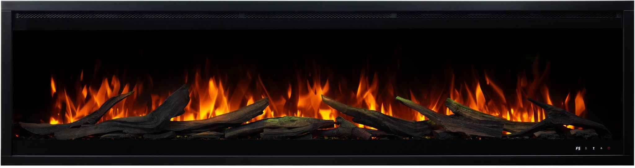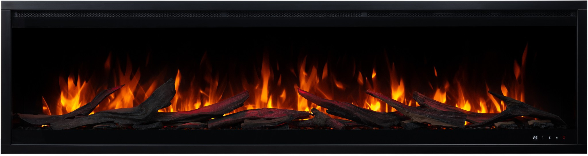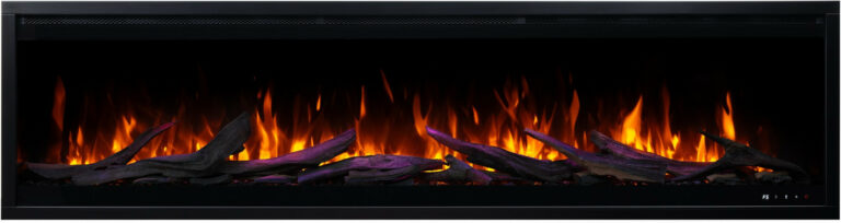 The Royal 3D fireplace comes with translucent logs that give the impression of glowing wood.