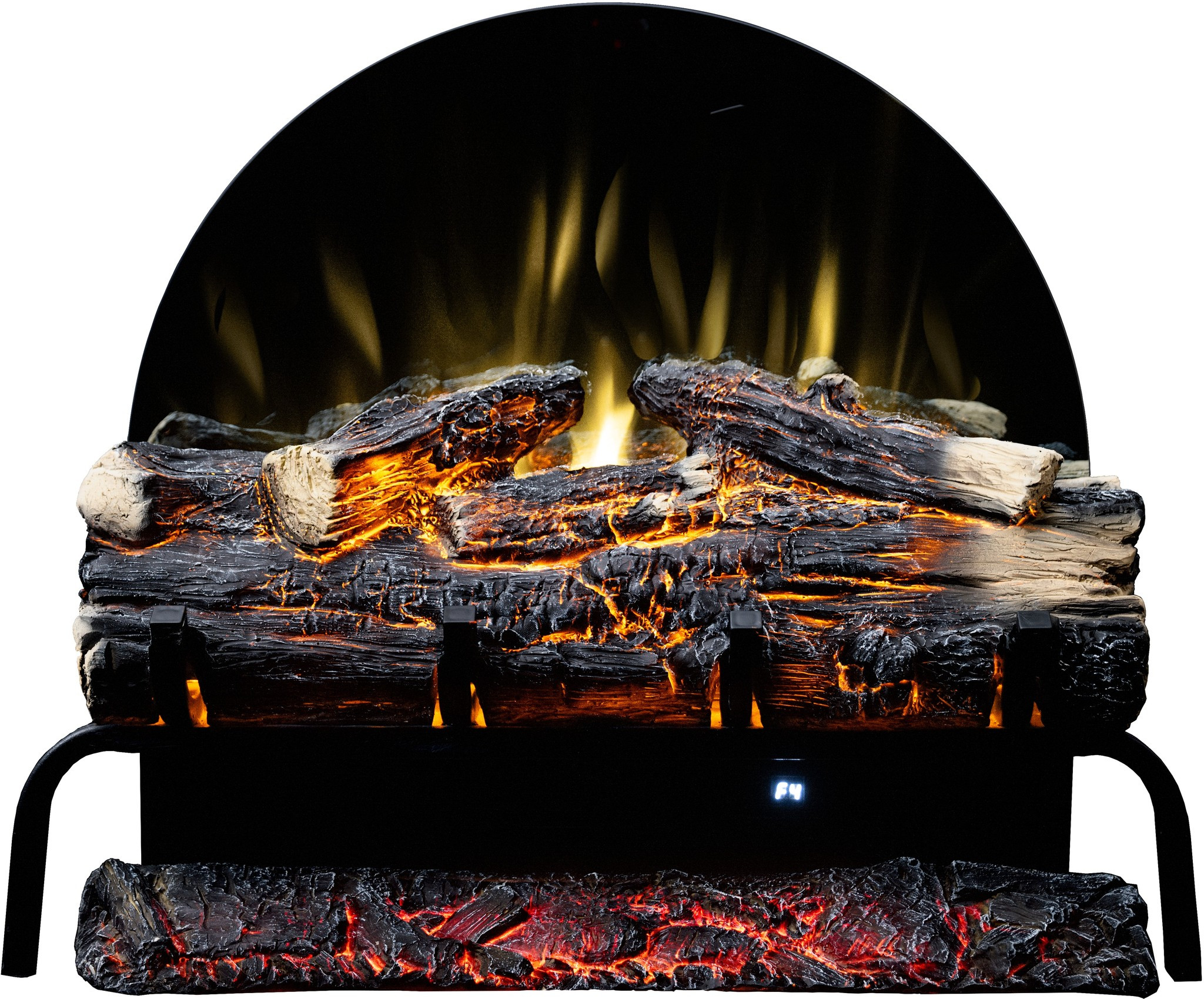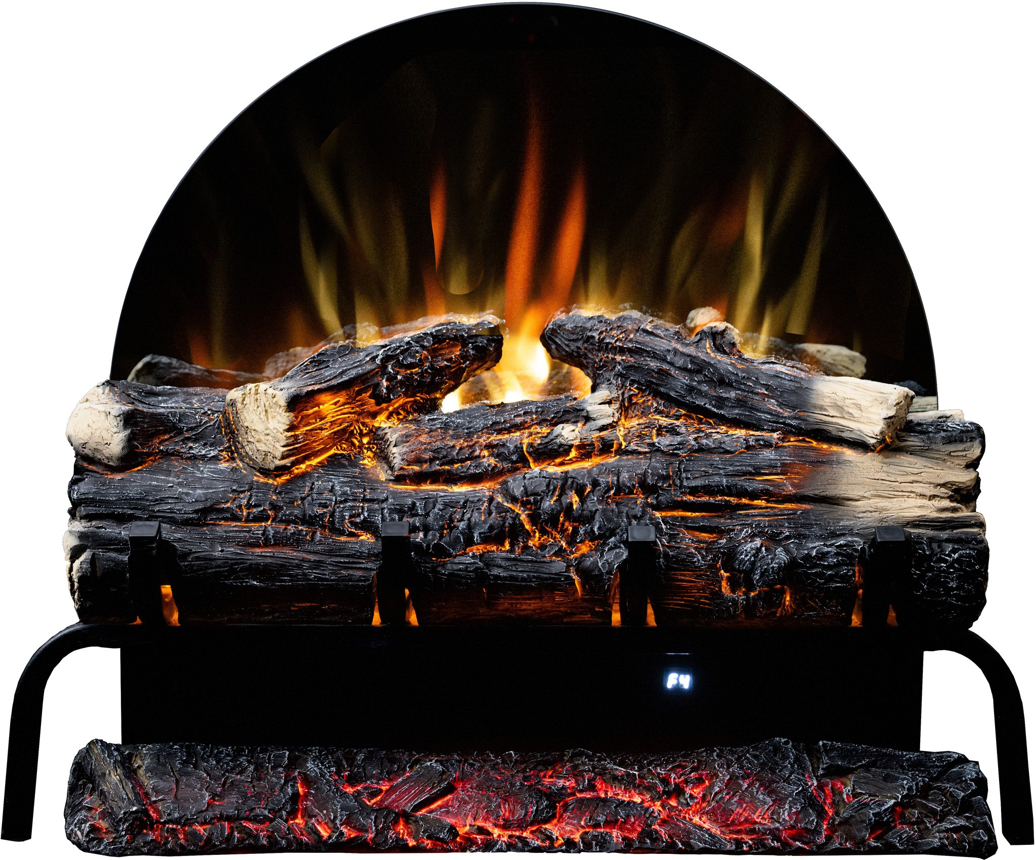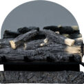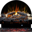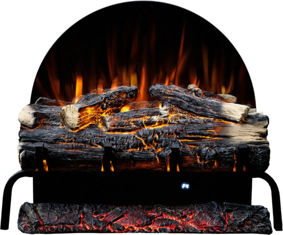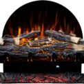 The Spark fireplace comes with translucent logs that give the impression of glowing wood.