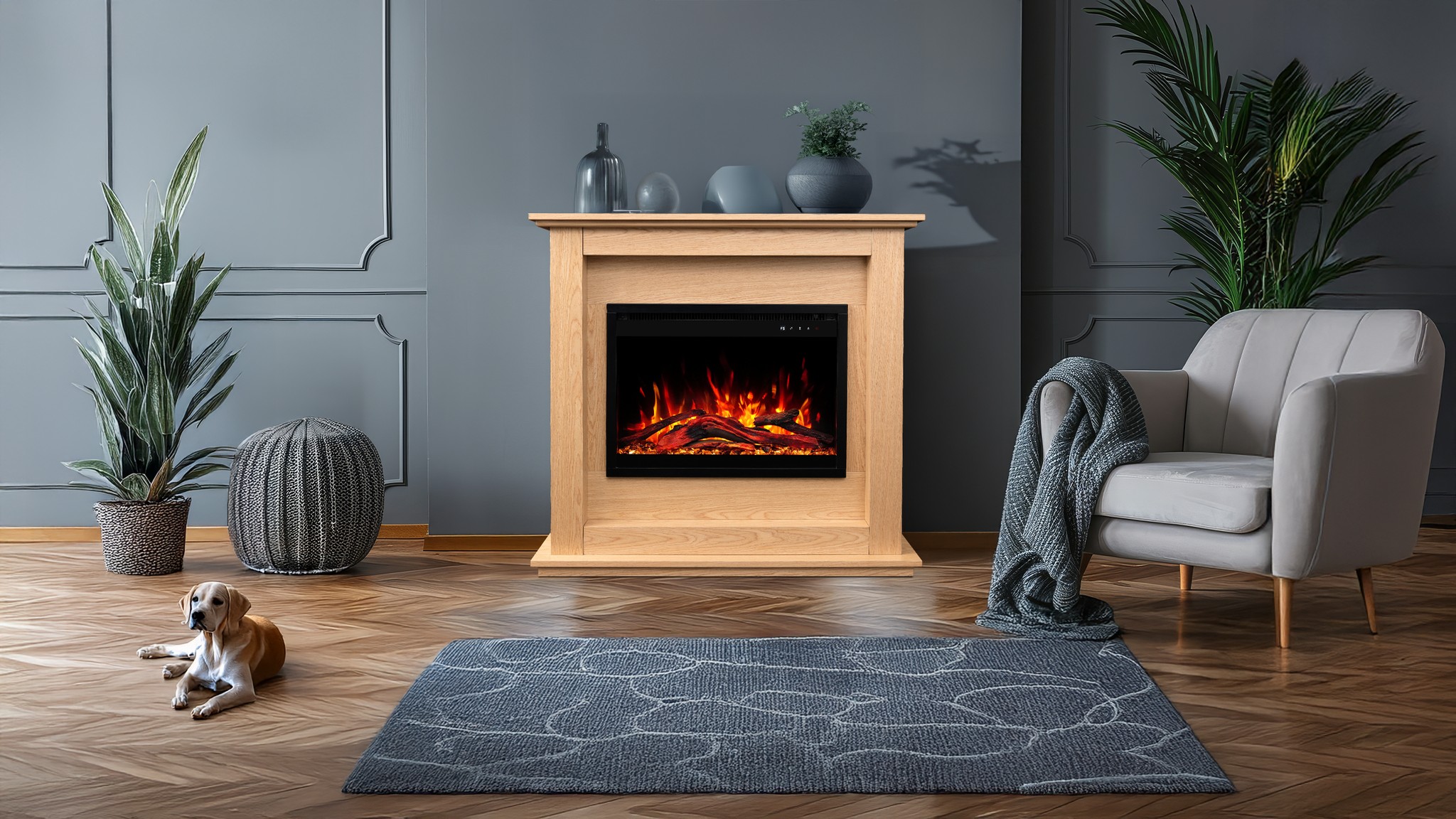 The fireplace can also be turned on and off with voice commands using the Amazon Alexa assistant.