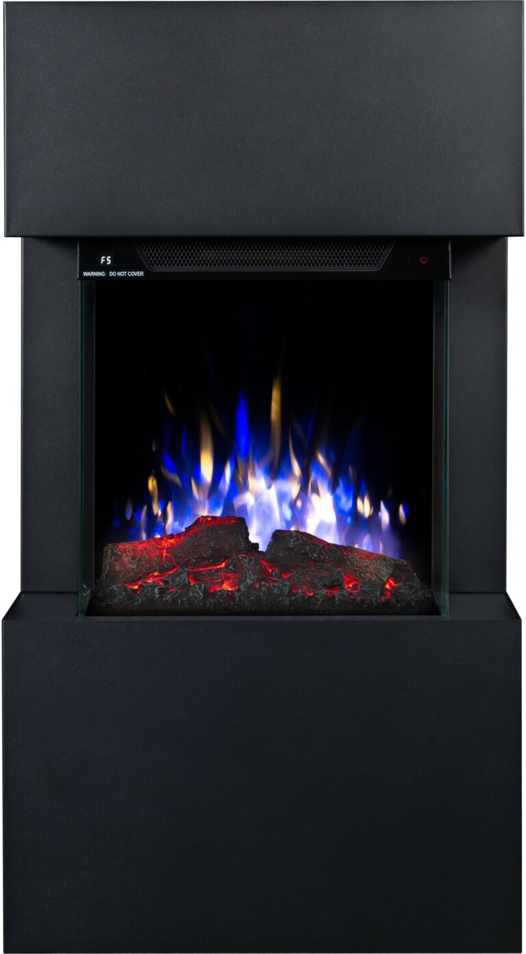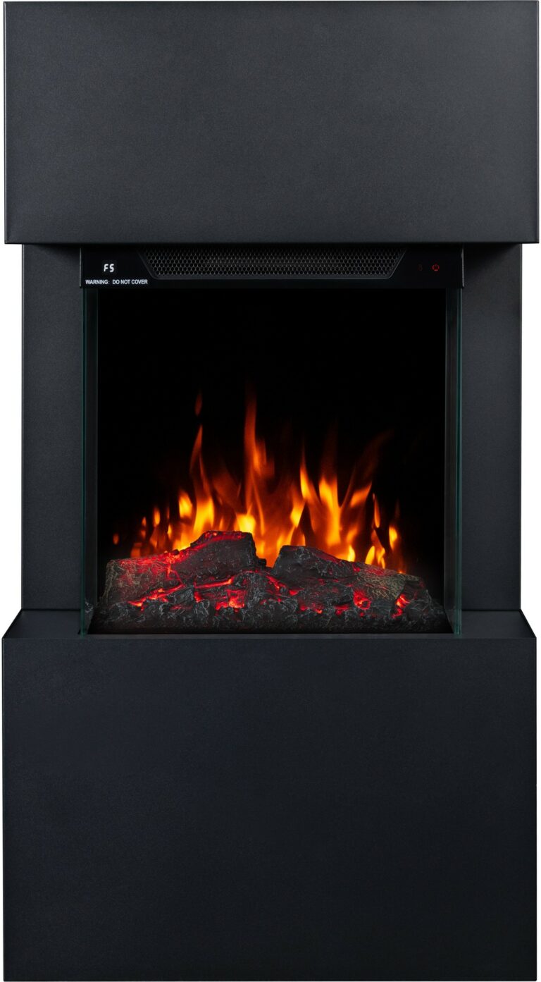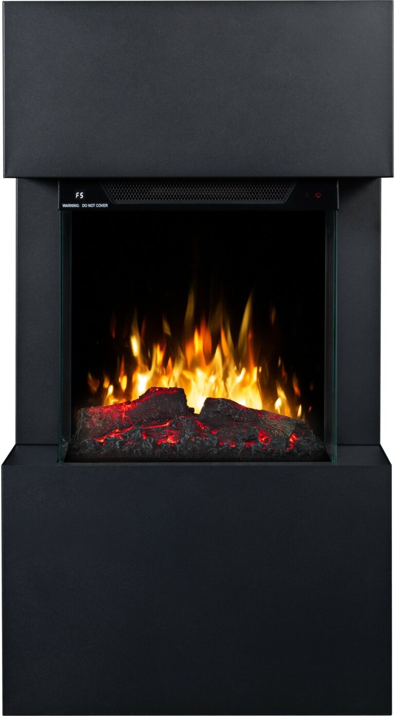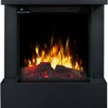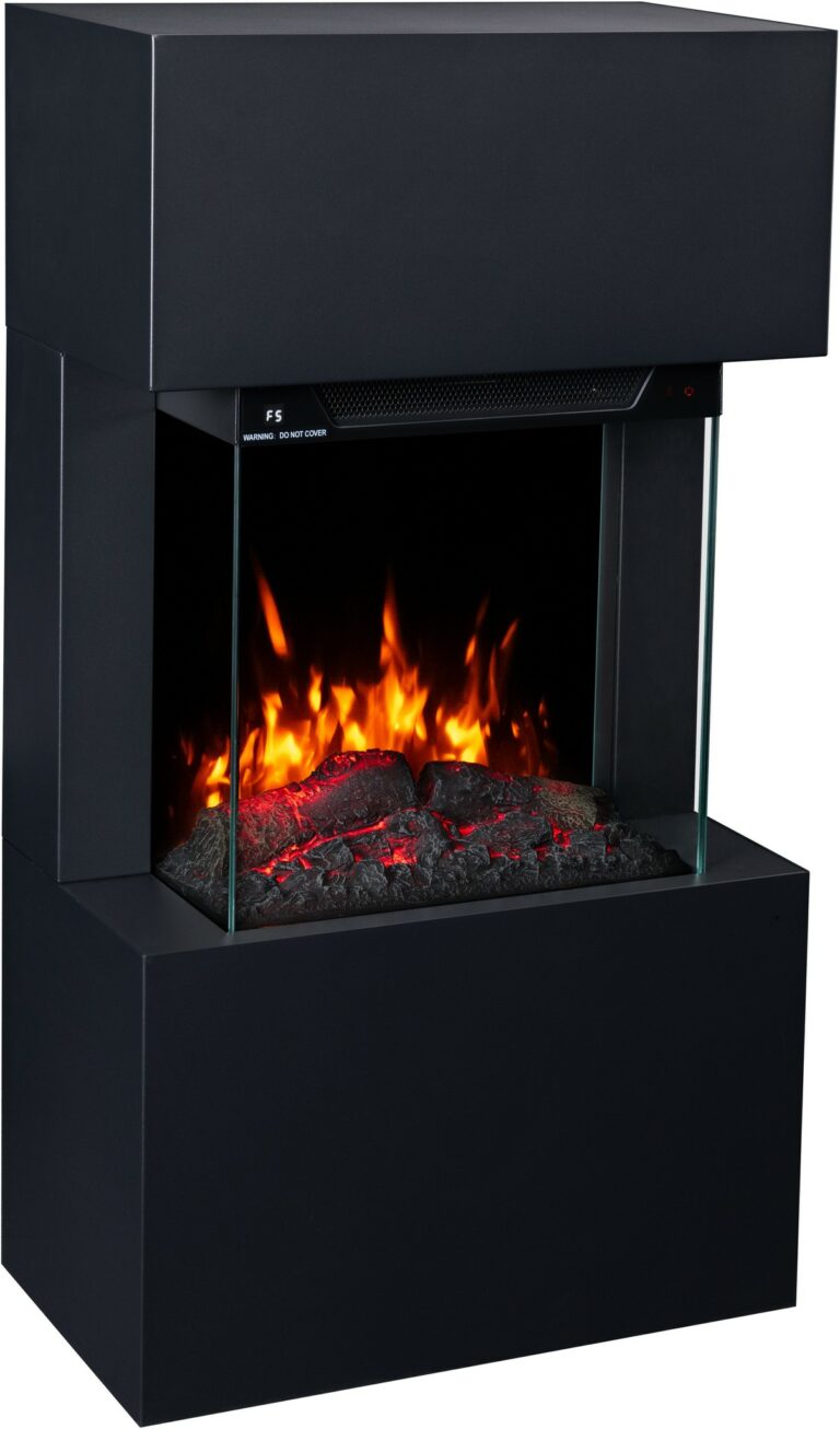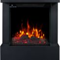 The Texel Black fireplace comes with translucent logs that give the impression of glowing wood.