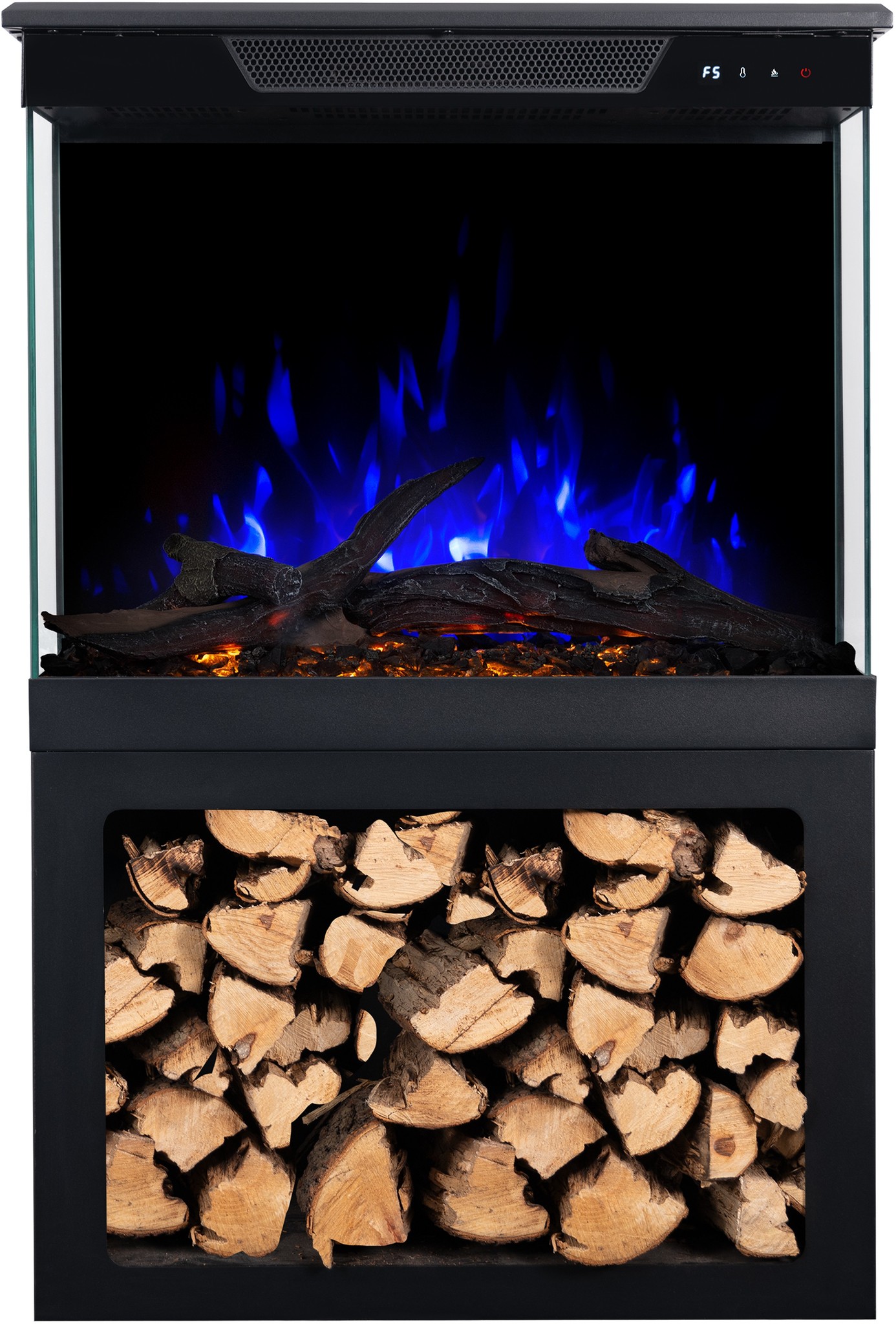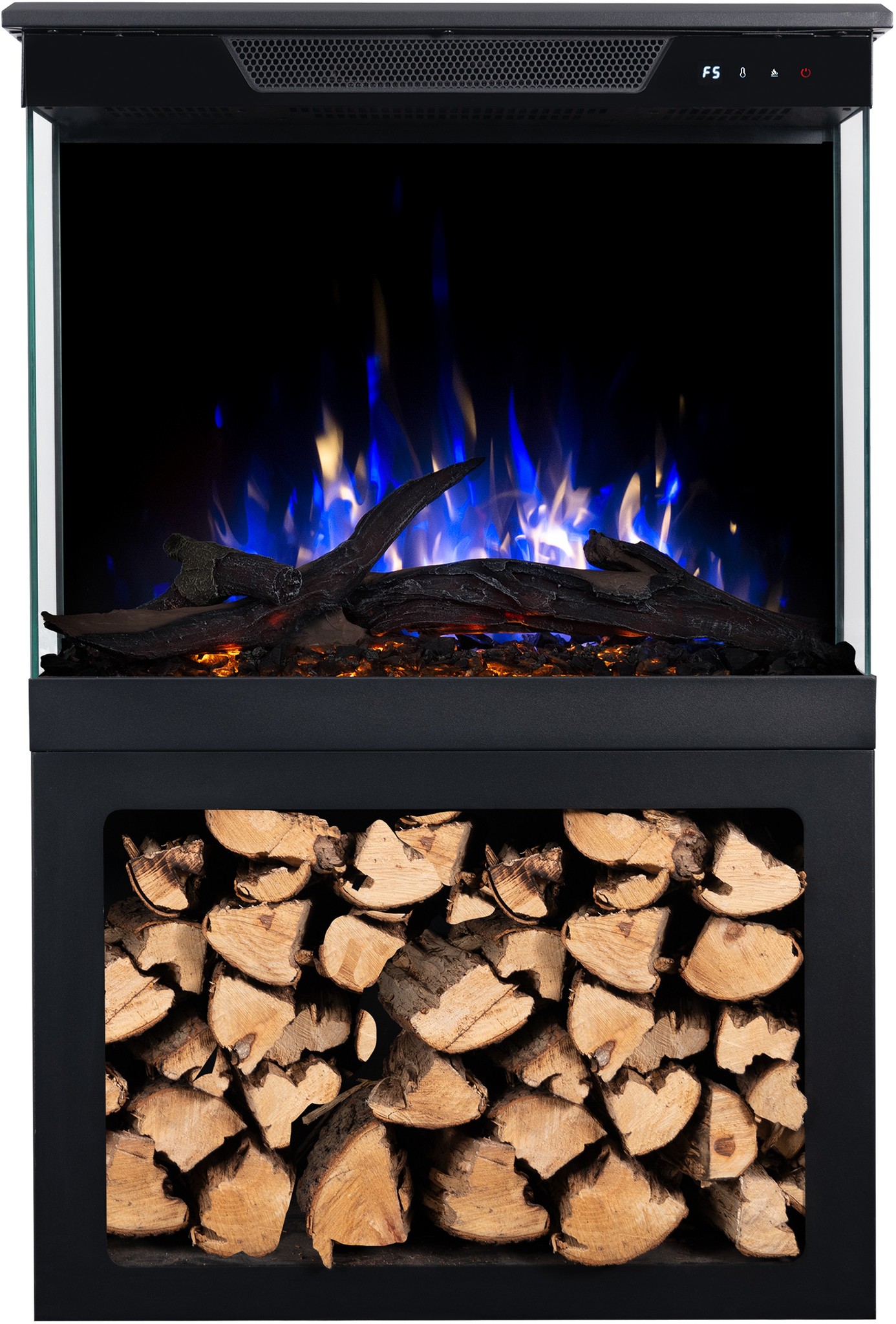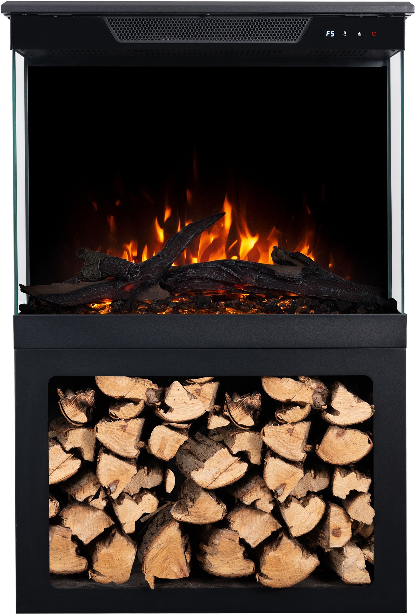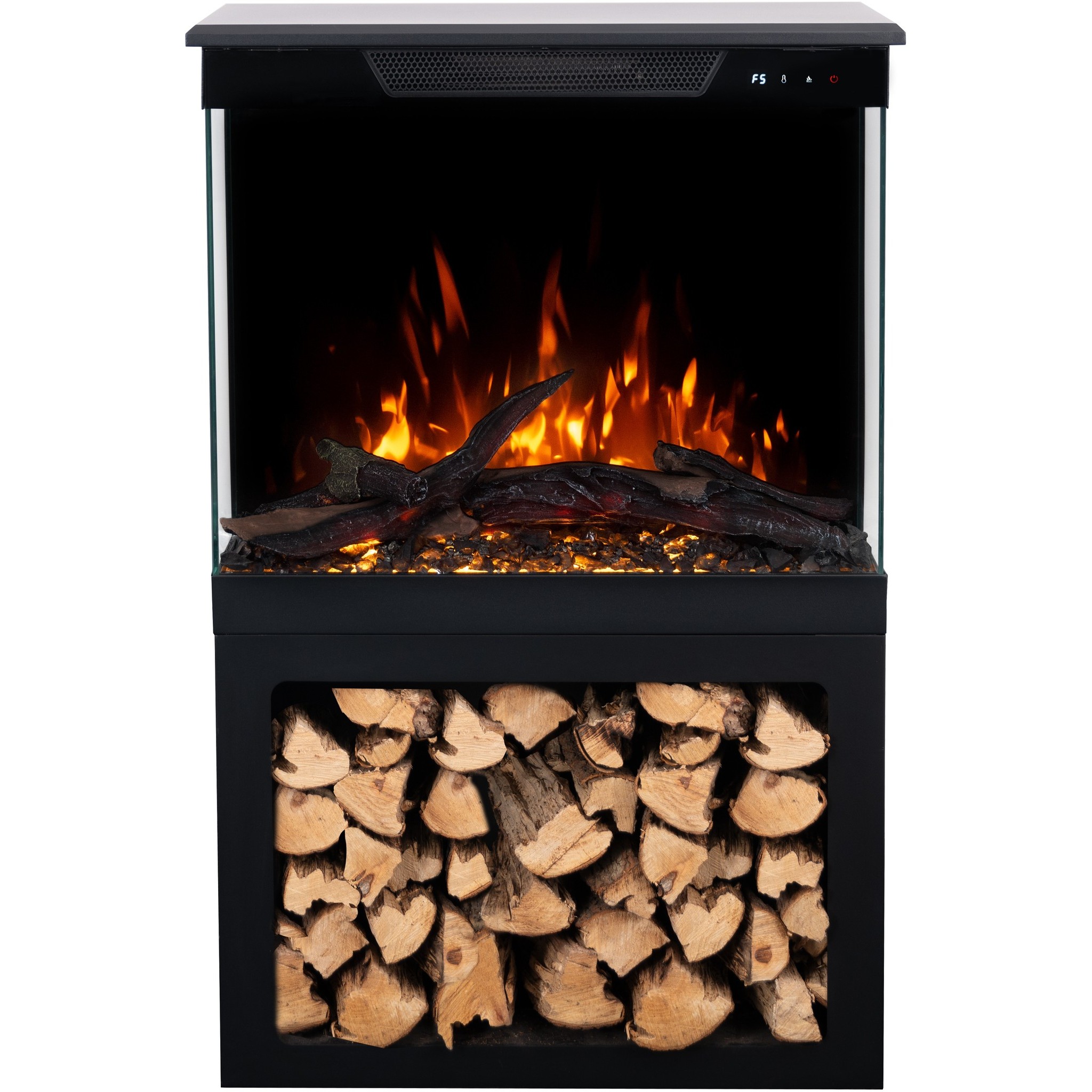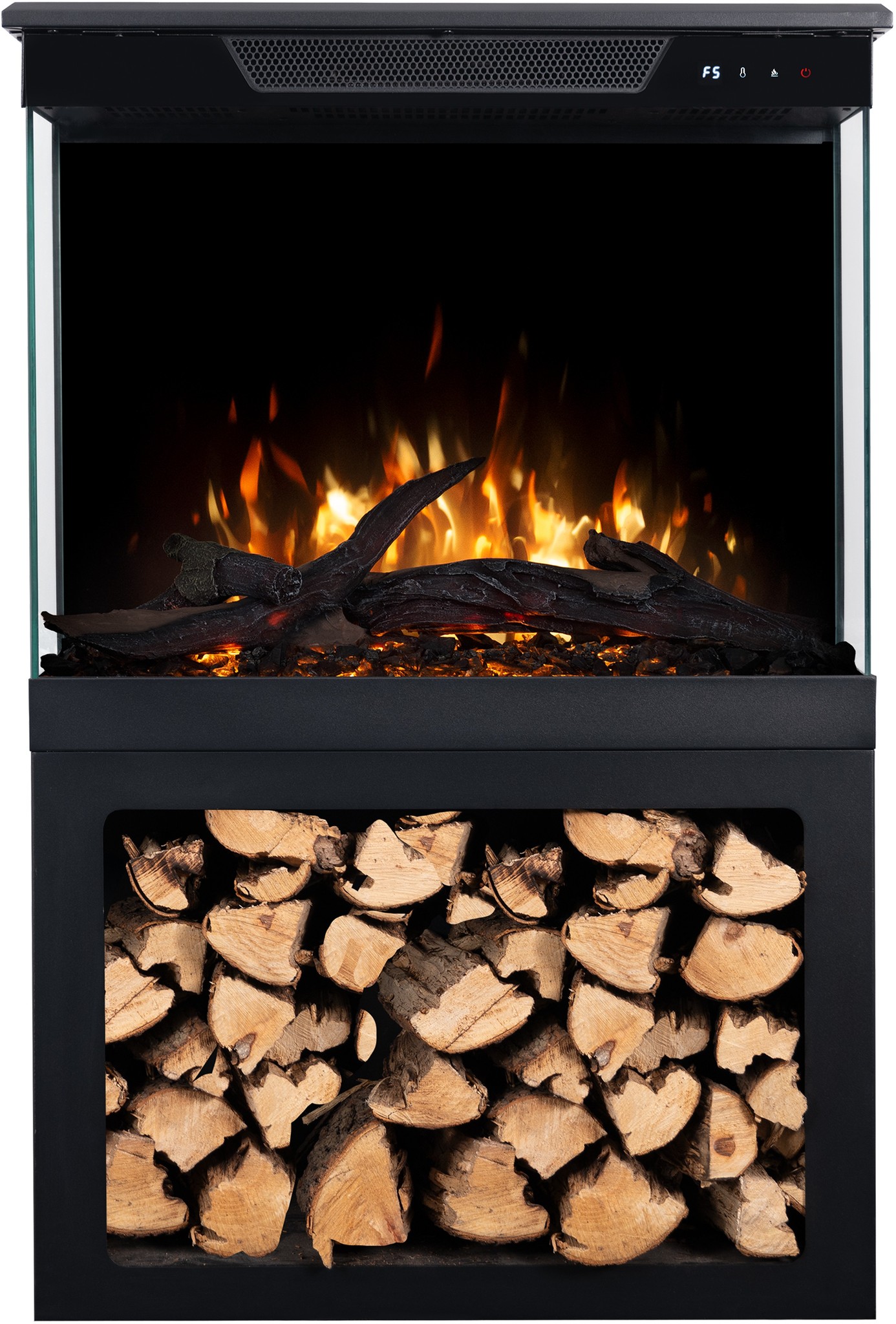 Thanks to the built-in loudspeaker, you can enjoy not only the beautiful sight of a burning fire, but also the authentic sounds of crackling wood.