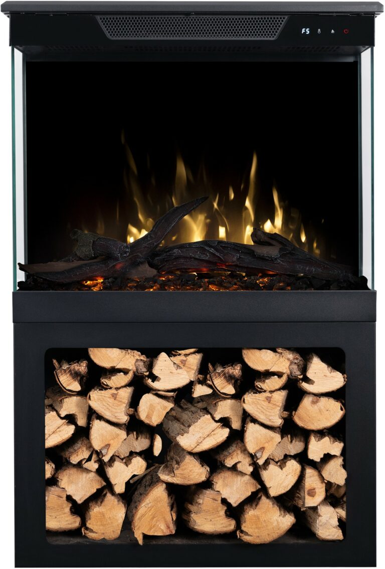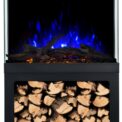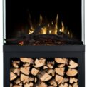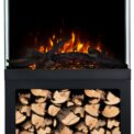The Tower fireplace comes with translucent logs that give the impression of glowing wood.