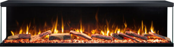 Three-sided ember bed looks quite impressive.