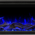 The Unique PRO fireplace comes with translucent logs that give the impression of glowing wood.