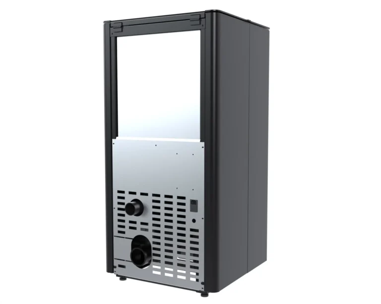Głębokość piecyka (23,5 cm) sprawia, że jest idealny do domów z mniejszym metrażem lub ograniczonym miejscem w pomieszczeniach.