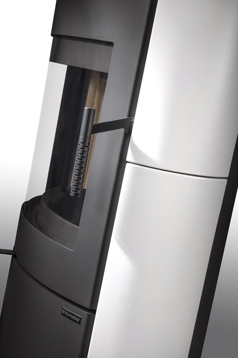 This fireplace stove is the perfect fit for modern interiors in particular. The ventilated designer handle permits use when the stove is lit. An EAI (External Air Intake) system is included. The standard version includes the option to connect an upper or rear flue gas exhaust. Thanks to the secondary air intake, the door glass is air-washed to prevent the cumulation of soot. The combustion chamber is lined with chamotte brick tiles. The primary and secondary air intakes are regulated by a single control element. The bottom part of the stove can be used for storing a small amount of wood.