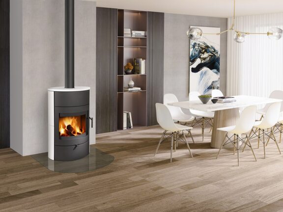 A generous combustion chamber with high quality design components and precise, clean lines. The BURGOS fireplace stove gives any interior a unique atmosphere.
