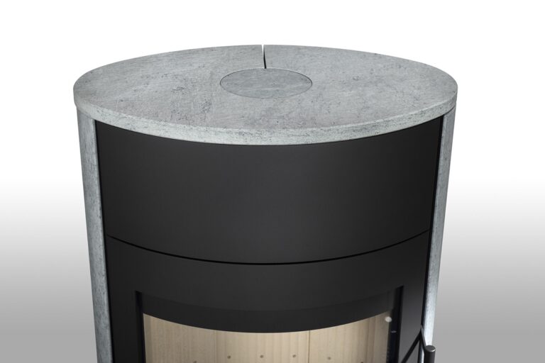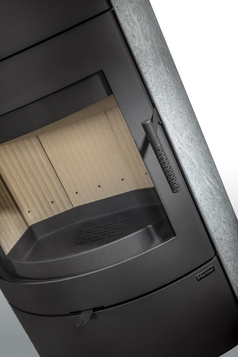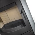 This fireplace stove is the perfect fit for modern interiors in particular. The ventilated designer handle permits use when the stove is lit. An EAI (External Air Intake) system is included. The standard version includes the option to connect an upper or rear flue gas exhaust. Thanks to the secondary air intake, the door glass is air-washed to prevent the cumulation of soot. The combustion chamber is lined with chamotte brick tiles. The primary and secondary air intakes are regulated by a single control element. The bottom part of the stove can be used for storing a small amount of wood.