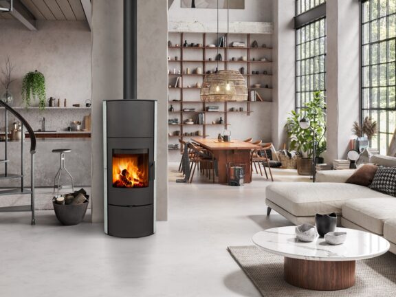 A slender, tall stove with a popular oval base and high heat radiation capacity.