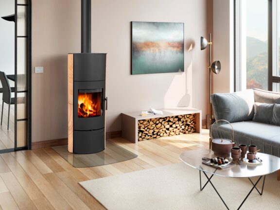 A slender, tall stove with a popular oval base and high heat radiation capacity.