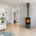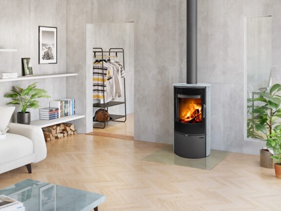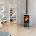 The door made completely of glass with stainless steel details lends the LAREDO fireplace stove an attractive and unique look.