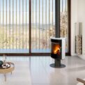 The beautiful and elegant LAREDO T fireplace stove provides a view of the flames from almost any angle.