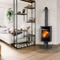 The beautiful and elegant LAREDO T fireplace stove provides a view of the flames from almost any angle.