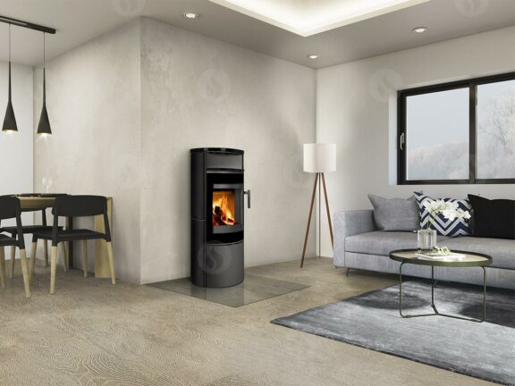 Pleasant details such as a sill above the combustion chamber and a door handle give the LUGANO fireplace stove an elegant look.
