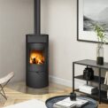 The oval shape of the LUGO N fireplace stove helps create a cosy interior. It includes pleasant details, such as a sill above the combustion chamber or the door handle whose technical design lends the fireplace stove an elegant look.