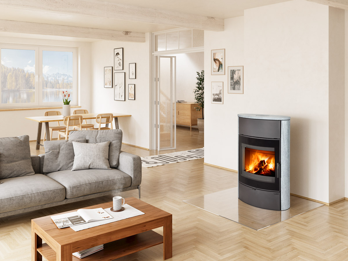 Discover the NAVIA G H wood-burning stove, which enriches traditional functions with a unique design element: the printed glass door. This elegant black trim on the outer edge of the glass gives the NAVIA G H a modern and clean look, while its functionality remains high. The stove can be equipped with accumulation fittings weighing up to 40 kg, which efficiently absorb and gradually release heat, thus ensuring long-term thermal comfort even after the fire is extinguished. This accumulation system extends the intervals between refills and reduces energy consumption. The design of the NAVIA G H with its large panoramic glass allows a beautiful view of the flames. The elegance and minimalism in the design bring visual pleasure and emphasize the aesthetic value of each room. Meeting strict ECODESIGN standards ensures that your heater is environmentally friendly, safe and economical, and you are investing in the sustainable comfort of your home.