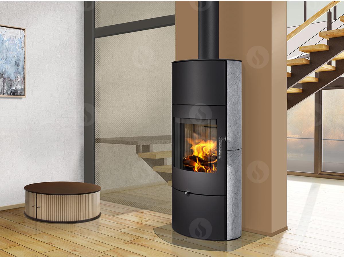 A sensitive fusion of all the major dimensions of the OVALIS A fireplace stove has resulted in a unique design. The rounded and unique dimensions of the glass provide a large area for direct observation of your fire. Accumulation tiles can be placed above the combustion chamber, prolonging heat radiation by several hours.