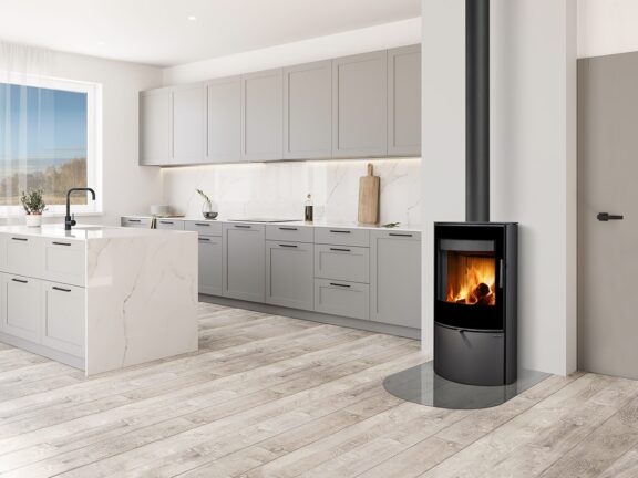 The rounded and unique dimensions of the OVALIS G stove glass provide a large area for direct observation of your fire.