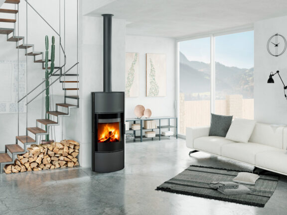 The sensitive fusion of all major dimensions of the OVALIS G H fireplace stove has resulted in a unique design. Accumulation tiles can be placed above the combustion chamber, prolonging heat radiation by several hours.