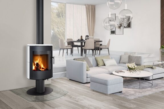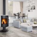 Its exceptionally small depth and oval shape mean this slim stove will even fit into small interiors. The OVALIS T stove rotates, allowing you to enjoy the view of your fire from almost anywhere.