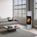 The beauty of the SORIA N fireplace stoves comes from the modern round shape in combination with the large door glazing which enables a unique view of the fire. Let yourself be captivated by the play of living flames.