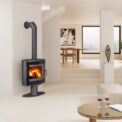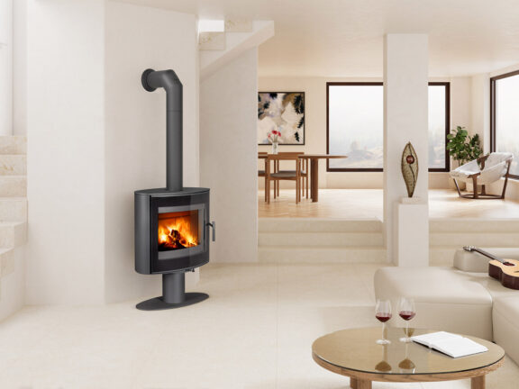 The stable leg of the stove ensures comfortable rotation of the entire body, which guarantees a perfect view of the fire, whether you are sitting in the living area or dining area. With a modern combustion chamber that promotes efficient and clean combustion, STROMBOLI G T meets strict environmental standards and minimise the impact on the environment.
