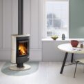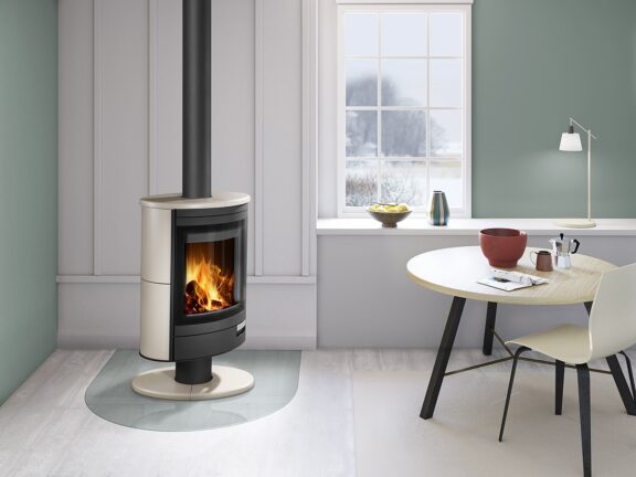 The large combustion chamber on its elegant pedestal and rotating mechanism of the STROMBOLI N fireplace stove offer you the opportunity to enjoy its radiating heat anywhere in the room.