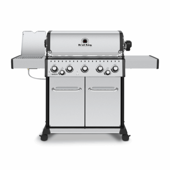 Serija Baron™ zagotavlja tako trdnost in moč v različnih velikostih za vsakdanjo rabo. Srce serije Baron je sestavljeno iz legendarnih Broil King komponent, ki naredijo razliko: 5 močnih Dual-Tube™ gorilnikov iz nerjavečega jekla, Flav-R-Wave ™ sistema uparjanja za neprimerljiv okus, težko obojestransko LTŽ rešetko, itd. Specite popoln zrezek. Na ražnju specite najljubše pečenke, ali naredite pico kot Italijani. Da bo vaše življenje lažje, je bila serija Baron ™ zasnovana za doseganje izjemnih rezultatov. Urbani stil, skupaj z razno opremo, naredi ta žar resnično vsestranski. Serija Baron ™ je res razred zase. S svojo zmogljivostjo in ceno ne pustijo ravnodušnih tudi najbolj zagretih žar mojstrov. Vključuje tudi zadnji gorilnik in premium vrtljiv raženj z elektro pogonom.