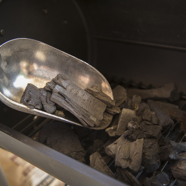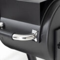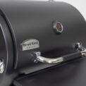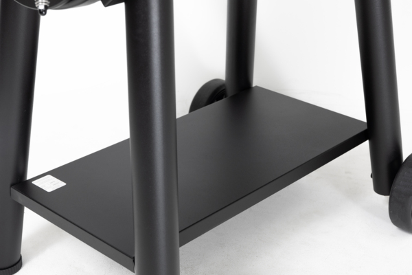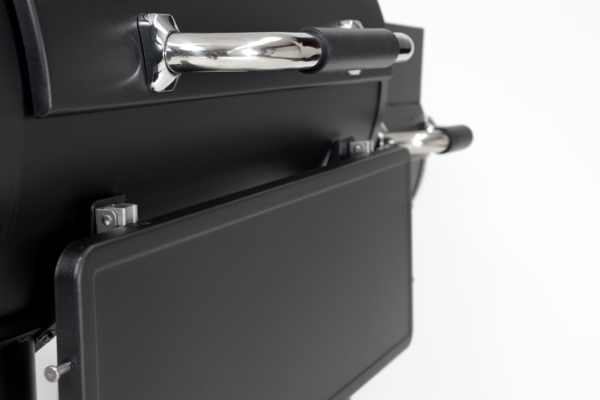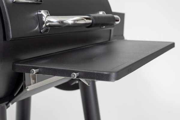 Regal™ Offset Smoker 500 je izdelan iz trpežnega 2 mm debelega jekla, kar zagotavlja dolgo življenjsko dobo in odlično zadrževanje toplote. Črna visokotemperaturna barva in robustna konstrukcija poudarjata profesionalni videz žara. Velika sprednja polica z integriranimi kljukicami za orodje omogoča priročno shranjevanje pripomočkov, medtem ko velika kolesa omogočajo enostavno premikanje žara.